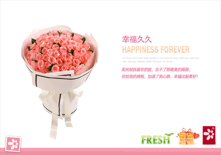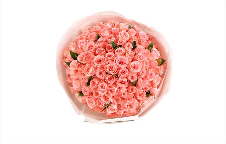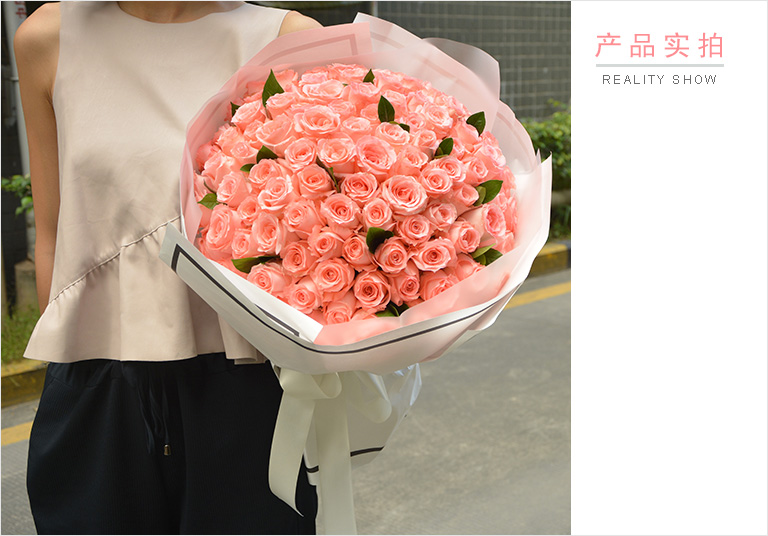 • 幸福久久--戴安娜粉玫瑰99枝,栀子叶适量 99枝粉玫特惠款