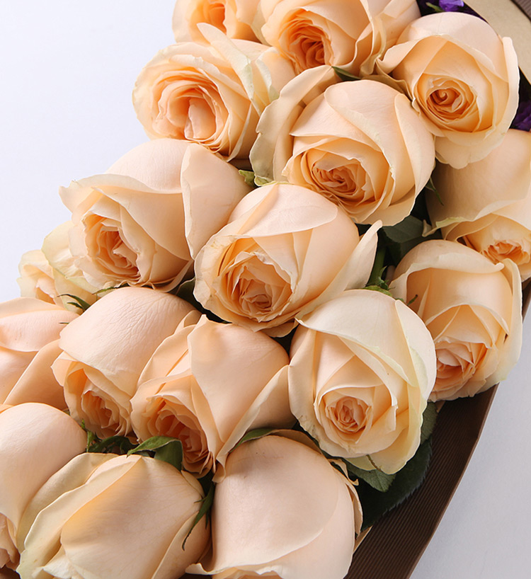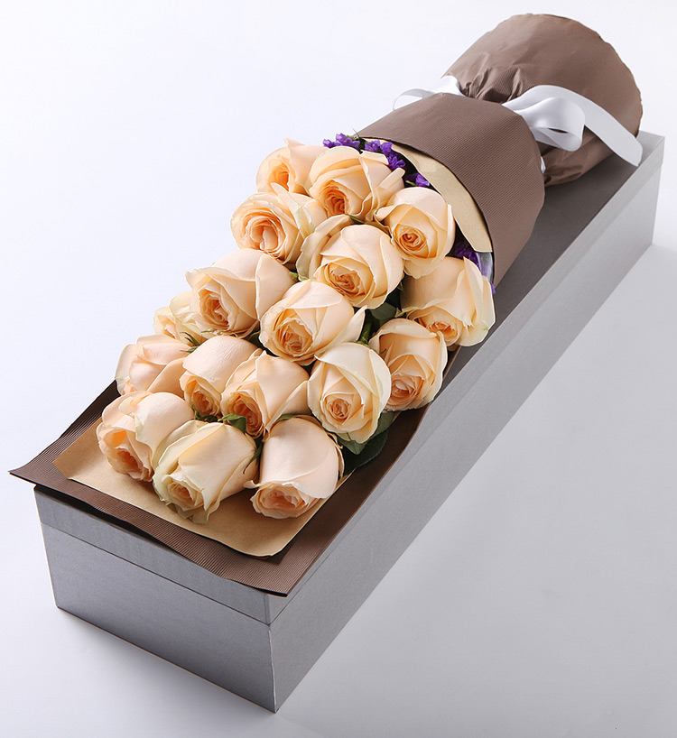 你最珍贵--精品玫瑰礼盒:香槟玫瑰19枝,勿忘我适量 优雅设计 精致甄选
