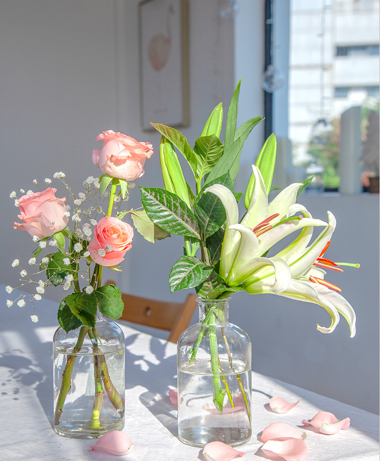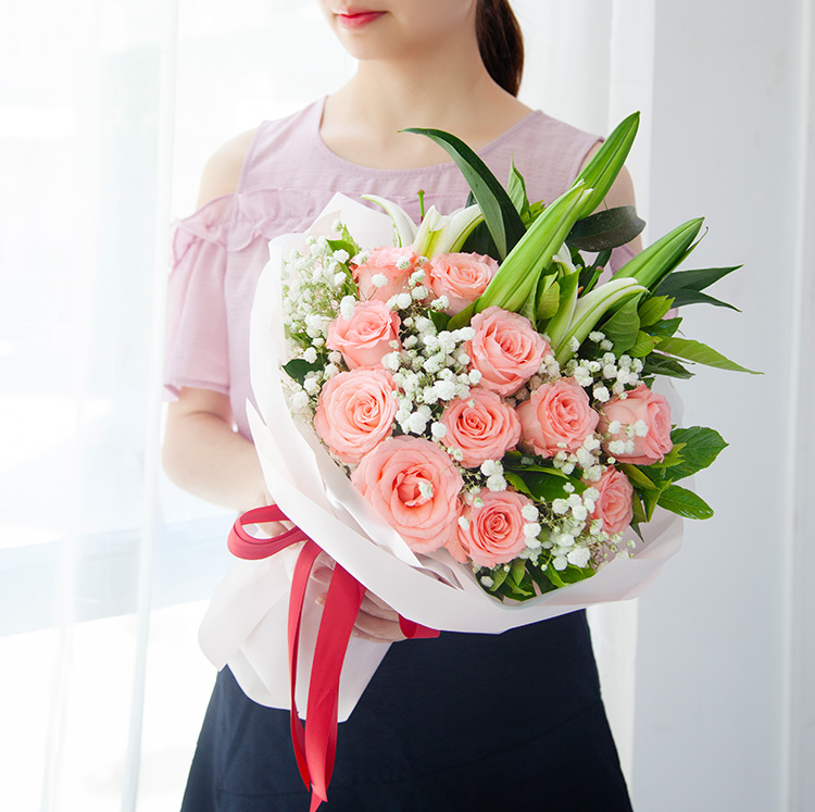 • 为爱相随--多头百合1枝,戴安娜粉玫瑰11枝