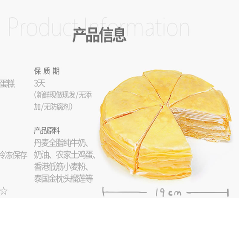 • 榴芒一刻 榴莲千层蛋糕新鲜榴莲手工生日蛋糕 全国顺丰保鲜送达