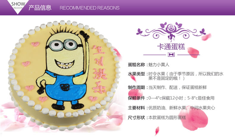 • 小黄人生日儿童卡通蛋糕同城订购配送